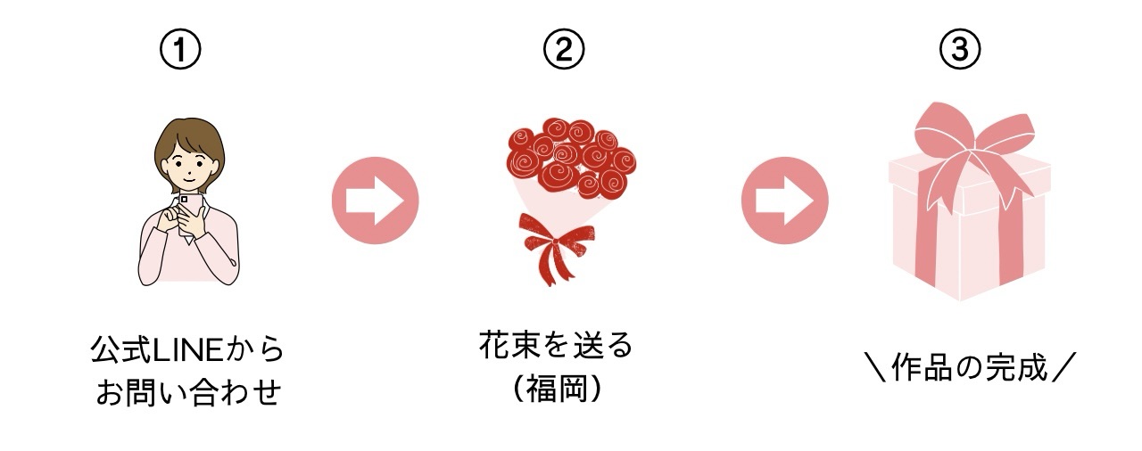 福岡・東京・大阪など全国から花の保存をご依頼いただけます。バラの保存・花束の保存・ブーケの保存はお任せください。